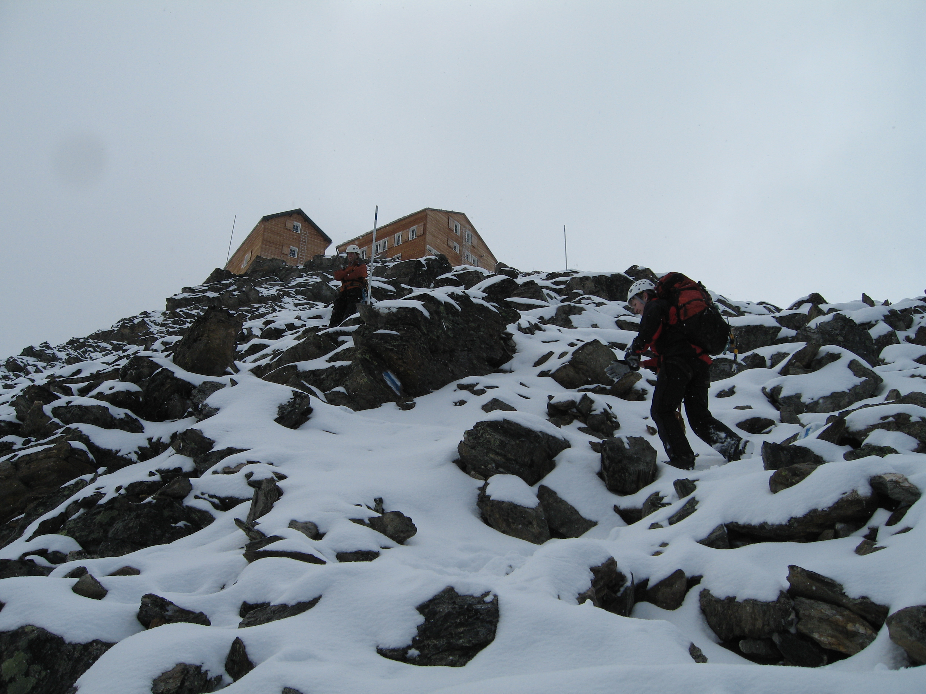 Στο καταφύγιο έχουμε χρόνο για να ξεκουραστούμε και να προγραμματίσουμε την ανάβαση μας. Με εντυπωσιάζει η καθαριότητα και η τάξη που επικρατεί. Δεν υπάρχει πολύς κόσμος λόγω της παρατεταμένης δεκαήμερης κακοκαιρίας. Από αύριο όμως αρχίζει να φτιάχνει ο καιρός. Τα προγνωστικά είναι φιλόδοξα, με ηλιοφάνεια και χαμηλούς ανέμους. Όμως λόγω της κακοκαιρίας των προηγούμενων ημερών δεν ξέρουμε πως θα είναι η συνθήκες για την κορυφή. Ο καταφυγιάς μας προειδοποιεί ότι το βουνό είναι για καλούς αναρριχητές!. Δεν μπορώ να χαρακτηρίσω τον εαυτό μου έμπειρη αναρριχήτρια αλλά από τις πληροφορίες που είχαμε από το διαδίκτυο είχαμε αποφασίσει ότι το βουνό είναι για τα μέτρα μας. Ο Θανάσης Πεχλιβάνης, ο Νίκος ο Κρούπης και εγώ είμαστε μια ομάδα χρόνια στα βουνά. Ξέρουμε τα όρια μας και τις δυνατότητες μας. Ο Νίκος πιο έμπειρος αναρριχητής πηγαίνει πάντα πρώτος στην αναρρίχηση. |
